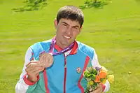 - Hasanov of Azerbaijan competes in the men's Triple Jump classification F46 Final at the Olympic Stadium at the London 2012 Paralympic Games. Архів оригіналу за 2 квітня 2015. Процитовано 6 вересня 2016.