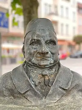 Пам'ятник книговидавцю Густаву Кюгну на Шкільному майдані (Neuruppiner Schulplatz), Нойруппін.