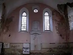 В інтер'єрі збереглися п'яти склепіння, тобто нижні його підпори, також збереглася ніша Арон Га-кодешу, декорована ліпним обрамуванням. У західній стіні основного об'єму споруди влаштовані кам'яні сходи, що вели на дах до бійниць.