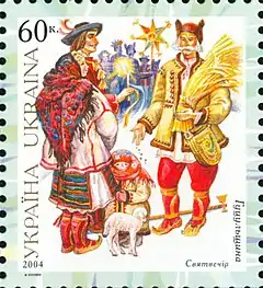 Гуцули у традиційному вбранні на марках України