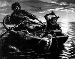 Злякавшись, що човен перекинеться, Гюмір обрізав снасть, і Йормунганд зірвався з гачка. Йдучи з велетенським котлом, розлючений Тор, розбив об лоб велетня кубок. Гюмір з друзями-велетнями намагався повернути котел, але Тор, вправно орудуючи молотом, здолав усіх[1].