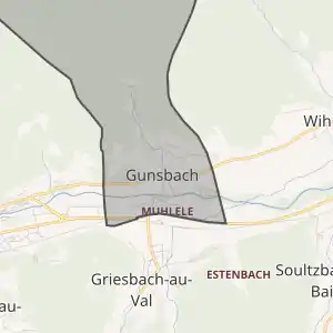 - Розташування муніципалітету Гюнсбак на мапі Франції та сусідні муніципалітети