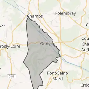 - Розташування муніципалітету Гюні на мапі Франції та сусідні муніципалітети