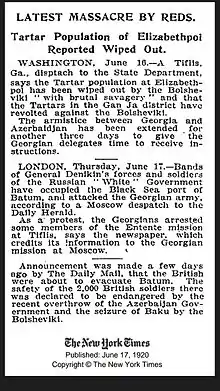 - 15,000 massacred // Cheltenham Chronicle. — 1920. — June. — С. 4.