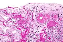 - Gamble CN (March 1986). The pathogenesis of hyaline arteriolosclerosis. Am. J. Pathol. 122 (3): 410–20. PMC 1888226. PMID 2420184.
