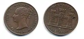 Спочатку у Гібралтарі використовувалися іспанські і британські грошові одиниці. У 1840 - 1841 роках розпочато карбування мідних монет для Гібралтару, в 1842 році вони випущені в обіг. Монети карбувалися згідно британської монетної стопи, але із зазначенням іспанських номіналів (кварти). У 1861 році карбування монет було припинено. Іспанські грошові знаки тривалий час зберігалися в обігу, а у 1889 – 1895 роках вони стали чинним платіжним засобом. Пізніше в Гібралтарі використовувались британські грошові одиниці.