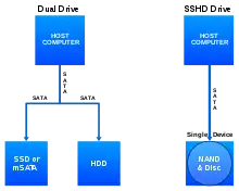 SSHD використовує адаптивну пам'ять для окремого зберігання «популярних» даних — ту частину інформації, до якої комп'ютер звертається регулярно. Кешовані дані записуються на флеш-пам'ять, і процесор набагато швидше отримує до неї доступ.