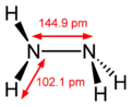 Гідрази́н — хімічна сполука із формулою N2H4. На запах подібна до аміаку, але за фізичними характеристиками схожа на воду. Зазвичай гідразин використовується як 60% водний розчин. Часто його використовують як компонент наповнюючих газових сумішей для виготовлення полімерних пін, а також як прекурсор у каталітичній полімеризації та у фармакології. Також гідразин застосовують як компоненту ракетного палива і для виготовлення газових сумішей повітряних мішків. Щорічно виробляється приблизно 260 тисяч тонн гідразину для промислового використання[2].