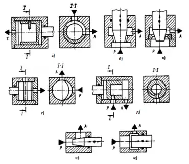 - е) золотникового типу;