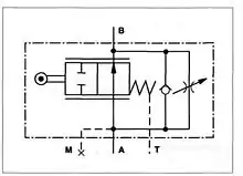 Поширеним елементом гідравлічних схем є дросель із зворотним клапаном (див. рис. 3), що призначений для обмеження та регулювання подачі робочої рідини в одному напрямку і вільного її пропускання в іншому.