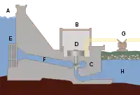 При звичайній гідроелектричній схемі вода накопичується в резервуарі, що часто створюється перегородженням річки дамбою. Вода з резервуару подається на турбіни, з'єднані з електричним генератором. У насосних електростанціях вода, що проходить через турбіни, подається туди по циклу знову. У припливних електростанціях використовується енергія води, що піднімається й опускається в результаті припливів. Одна п'ята частина електроенергії, що виробляється у світі — гідроелектрична.