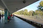 Конструкція станції — наземна відкрита з однією береговою та однією острівною платформами.