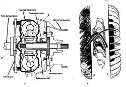 Гідротрансформатор складається з розміщених у загальному корпусі трьох співвісних коліс: насосного, турбінного і направляючого (реактора), що утворюють замкнутий контур, заповнений рідиною (мастилом).