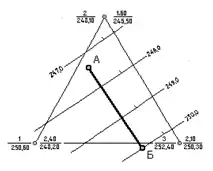 Рис. 1. Гідроізогіпси на схемі визначення напрямку руху ґрунтових вод