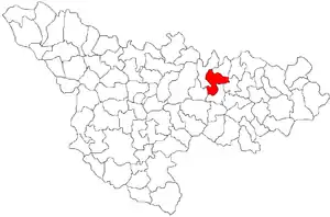 Комуна розташована на відстані[3] 374 км на північний захід від Бухареста, 40 км на схід від Тімішоари.