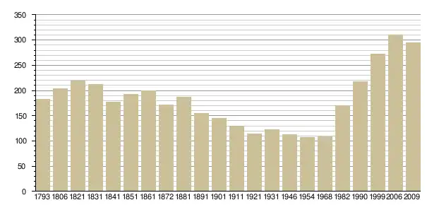 Динаміка населення (base Cassini de l'EHESS pour les nombres retenus jusque 1962[3], base Insee à partir de 1968 (population sans doubles comptes puis population municipale à partir de 2006)[4] · [5] ):