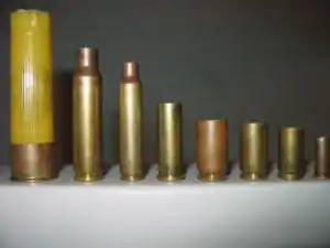 - Літера R в найменуванні цього патрона і йому подібних означає англ. rimmed — «з закраїною»