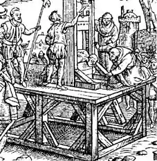 Гільйотина — пристрій, який використовується для відтинання голови при здійсненні смертної кари. Широкої популярності і страшної слави цей пристрій набув під час Французької революції, коли під його лезом загинуло принаймні 15000 осіб. Винахід гільйотини помилково приписують доктору Жозефу Гійотену, який лише запропонував її використання, хоча як знаряддя для здійснення смертної кари гільйотина існувала до того часу вже декілька сторіч.