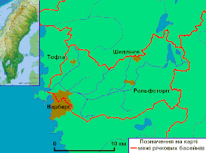 - Christina Thoms-Hjärpe. Län och huvudavrinningsområden i Sverige. — Faktablad nummer 10. — Norrköping: Sverige Meteorologiska och Hydrologsska Institut. — November, 2002. (швед.) на сайті SMHI Шведського інституту метеорології й гідрології.