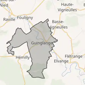 - Розташування муніципалітету Гінгланж на мапі Франції та сусідні муніципалітети
