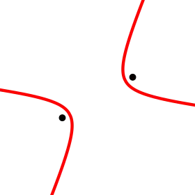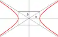 Для порівняння, відповідне рівняння для виродженої гіперболи (що складається із двох прямих, які перетинаються) є наступним