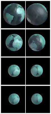 Припускають, що 4 млрд. років тому діаметр Землі становив 10-13% від сучасного, 1,6 млрд. років тому – 55% від сучасного. В межах гіпотези припускається, що ядро Землі складається не із заліза, а з гідридів заліза. Вивільнення водню приводить до розширення ядра і, таким чином, всієї планети. За виконаними підрахунками Земля нині збільшується в діаметрі на 2 см щорічно (довжина екватора – на 12 см щорічно). Гіпотеза розширення Землі пояснює ряд складних питань з геології «молодої Землі» та ряд питань сучасної глобальної геологічної картини планети, зокрема, що декілька млрд. років тому континентальні плити утворювали одне ціле, океанів ще не було. Сучасна система всепланетних океанічних розломів – це по суті «шви», по яких розтріскується Земля при розширенні, звідки надходить глибинна речовина для формування океанічної земної кори. Ця гіпотеза пояснює і питання механізму формування та відмінності в будові континентальної і океанічної кори (остання молодша, тонша і простіша за будовою – відсутній ґранітний шар порід).
