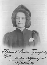 Зінаїда Миколаївна Гіппіус (нар.8 (20) листопада 1869 — пом.9 вересня 1945)[7] — російська письменниця, критик. Дружина Дмитра Мережковського.