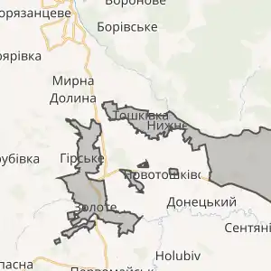 До складу громади увійшли міста Гірське, Золоте, селища міського типу Нижнє, Новотошківське, Тошківка та села Жолобок, Катеринівка, Кримське, Оріхове, Причепилівка, Сокільники[2].