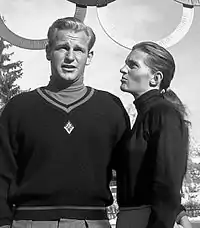 Андреа Мід-Лоуренс (праворуч) виграла дві золоті медалі на Іграх 1952 року, а її чоловік Девід посів 35-ме місце в гігантському слаломі