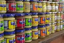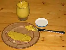 - Американська жовта гірчиця готується з насіння білої гірчиці й оцту з великою кількістю цукру і підфарбовується куркумою, має рідку консистенцію.