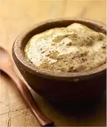 - Українська гірчиця — гостра приправа з порошку салатної гірчиці з додаванням оцту.