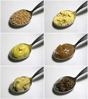 Гірчицю виробляють з насіння трьох видів рослин родини капустяних — гірчиці білої, салатної та чорної.