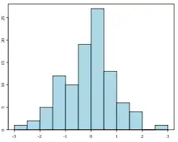 Гістогра́ма (від грец. histos, тут стовп + gramma — межа, буква, написання) — спосіб графічного представлення табличних даних, приблизне представлення розподілу числових даних. Являє собою діаграму, що складається з прямокутників без розривів між ними. Кількісні співвідношення деякого показника представлені у вигляді прямокутників, площі яких пропорційні. Найчастіше для зручності сприйняття ширину прямокутників беруть однакову, при цьому їх висота визначає співвідношення відображуваного параметра.