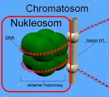Гістон H1 — лінкерний гістон. Гістон H1 є одним з п'яти основних гістонових білків, що пакують ДНК в клітині ядерних організмів. Інші чотири основні гістони, — H2A, H2B, H3 та H4 — є коровоими, вони формують найменшу організаційну структуру хроматину під назвою нуклеосома, навколо якої накручена молекула ДНК. Гістон H1 є лінкерним, він з'єднується з нуклеосомою у місці входу/виходу ДНК, формуючи структуру під назвою хроматосома.[1]
