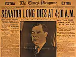 8 вересня 1935 р. Лонга поранили пострілом у приміщенні Капітолію штату Луїзіана, а через два дні він помер. Сенатору було 42 роки. Його останніми словами стала фраза: