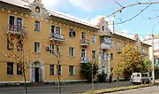 Пізніше, в другій половині 1950-х, збудовано чотириповерховий будинок на вул. Алматинській, 107. В екстер'єрі будинку помітні архітектурні риси середини 1950-х: відсутність тинькування, силікатна цегла, бетонні карнизи та капітелі пілястр індустріального виробництва.