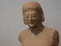 Період архаїки був часом зародження й прославленої давньогрецької скульптури. Розвиток пластики визначався, в першу чергу, естетичними вимогами суспільства. Часті збройні зіткнення між народами потребували від грецьких воїнів чималої фізичної сили. З юних років елліни займалися гімнастичними вправами, покликаними розвинути міць та силу тіла, а також укріпити волю воїна. Естетичні уявлення стародавніх греків не відділяли фізичної та духовної краси, а навпаки вони вважали, що фізична краса має свідчити й про красу духовну — принцип калокагатії. Становленню такого світогляду сприяли й Олімпійські змагання, переможців яких шанували трохи не рівно із богами. Образ красивої людини в добу архаїки знайшов своє відображення у статуях юнаків, званих куросами. Майже всі вони однотипні: зображують юнака у повний зріст, мають спрощений геометризований силует. Статичність пози передається постановкою ніг — ліва нога посталена попереду правої. Підкреслюючи атлетичність постави, скульптор поки що схематично окреслює грудні м'язи, діафрагму та м'язи живота. Іншим, не менш розповсюдженим типом скульптури, були й зображення дівчат — кори. В Афінах вперше вони з'явились як фігури юних жриць богині Афіни, які встановлювали на Акрополі. Дівчат зображували нерухомими у довгих пеплосах, перев'язаних поясом. Голову кори із довгим хвилястим волоссям міг прикрашати вінок, вуха прикрашали сережки. В лівій руці кора тримала вінок або гілку. Дедалі образ кор все більше відповідав гуманістичним ідеалам давньогрецької культури: скульптор зображував мигдалеподібні очі жриці, тонкі дуги брів, ледь помітну посмішку на вустах.
