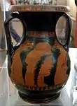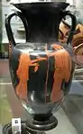 Вазописець Лондон E342. Амфора з некрополя Ноли, Італія. «Геба і Афіна» ( червонофігурний вазопис ), бл. 460 р. до н.е.