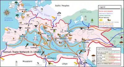 Торгівля Римської імперії була вагомим сектором Римської економіки у ранній Республіці і протягом всього імперського періоду. Моди і тенденції в історіографії і в популярній культурі, як правило, нехтують економічною основою імперії на користь лінгви-франка латини та пригод римських легіонів. Мову і легіони підтримувала торгівля, одночасно і спираючись на них. Римляни були бізнесменами, а довговічність їх імперії була пов'язана з їх комерційною торгівлею.