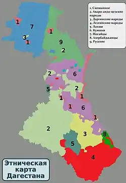 Відповідно до Конституції Республіки Дагестан, державними мовами є російська та мови всіх народів, що населяють республіку. Серед них найпоширеніш аварська, агульська, азербайджанська, даргинська, кумицька, лакська, лезгинська, ногайська, рутульська, табасаранська, татська, цахурська, чеченська мови.![]()
