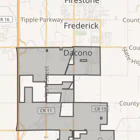 Даконо розташоване за координатами 40°03′44″ пн. ш. 104°56′59″ зх. д. (40.062154, -104.949614)[2]. За даними Бюро перепису населення США в 2010 році місто мало площу 20,59 км², з яких 20,56 км² — суходіл та 0,04 км² — водойми.