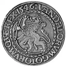 У 1510—1512 роках в області Рудних гір на північному сході Богемії відкрито багаті родовища срібла. За наказом місцевого правителя Штефана Шліка 1516 року засновано селище рудокопів, яке отримало назву Таль, від нім. Tal — долина. У наступному, 1517 році, місто, що розрослося, отримало назву Йоакимсталь (на честь покровителя рудокопів святого Йоакима)[8].