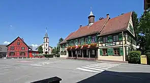 Муніципалітет розташований на відстані[2] близько 420 км на схід від Парижа, 28 км на північний схід від Страсбура.