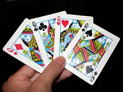 | Французька колода | Масті: | ♠ Піка · ♦ Бубна · ♣ Трефа · ♥ Чирва |
