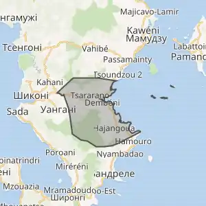 Муніципалітет розташований на відстані[2] близько 8300 км на південний схід від Парижа, 9 км на південний захід від Мамудзу.