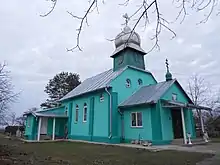 Муровану церкву, що має форму невеликої базиліки з різновисоким двосхилим дахом над навою та нижчою і вужчою вівтарною частиною, збудували майстри з Вишкова. При вході згодом добудували закритий ґанок.