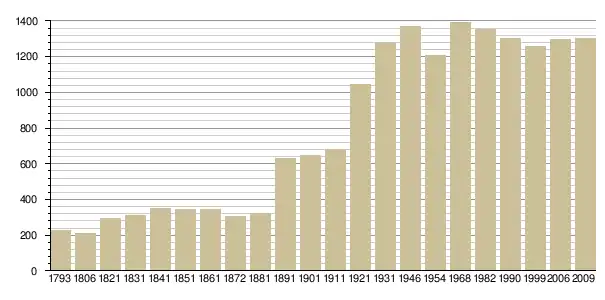Динаміка населення (base Cassini de l'EHESS pour les nombres retenus jusque 1962[3], base Insee à partir de 1968 (population sans doubles comptes puis population municipale à partir de 2006)[4] · [5] ):