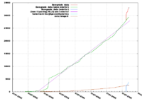 Динаміка росту Данської Вікіпедії до 2005 року.