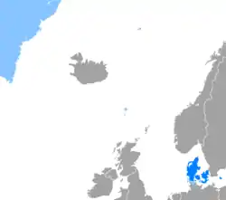 ![]() Поширення данської мови: Мова більшості Мова меншості | |