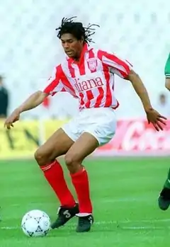 | Даніел Батішта під час матчу у складі «Олімпіакоса» у сезоні 1993—94 | ||